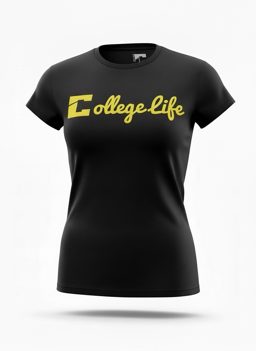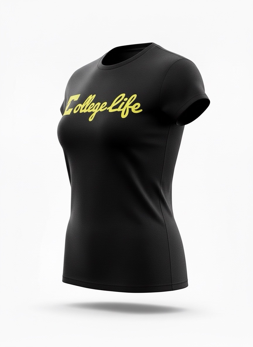 Black (Female) Yellow Print Cursive Logo T-Shirt