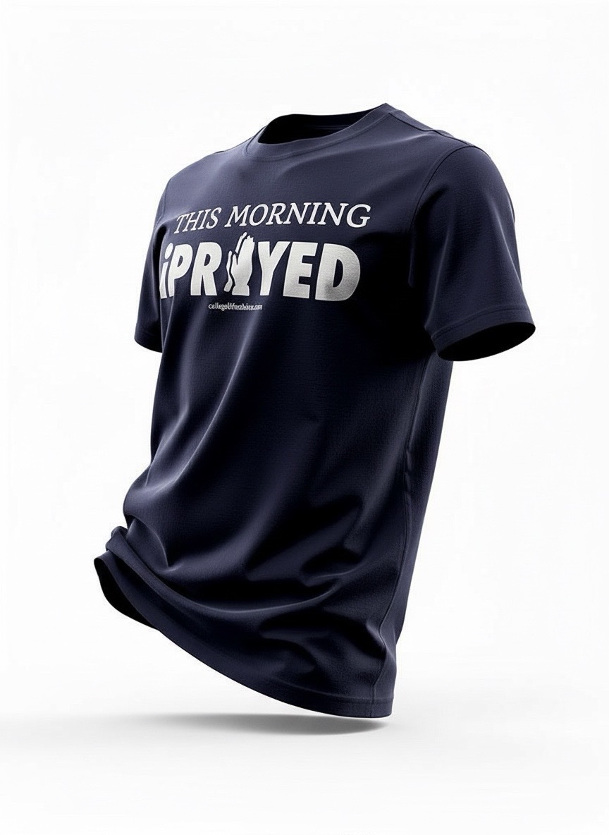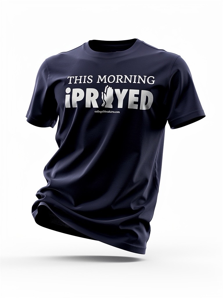 There are multiple color variations due to the popularity of the iPRAYED design. This particular navy t-shirt with white print contains 100% ringspun cotton for extreme softness.