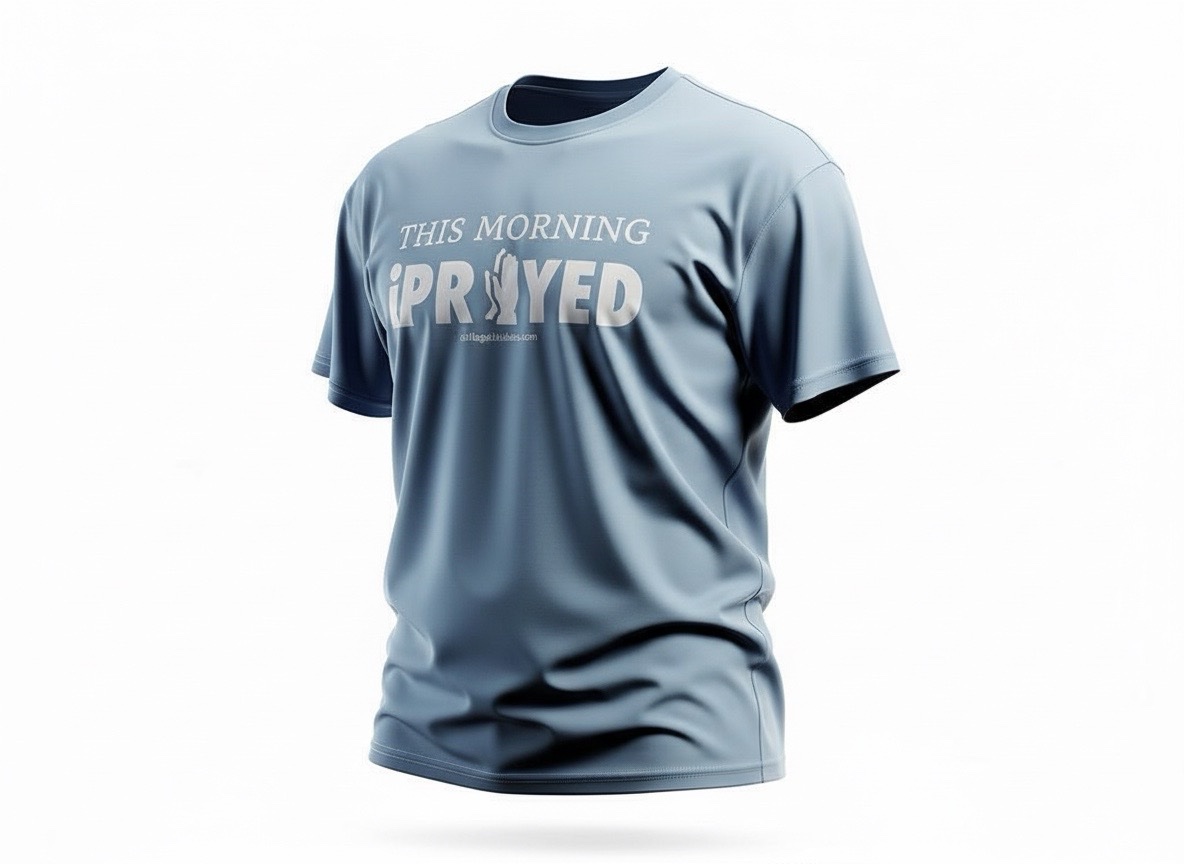 THIS MORNING iPRAYED (Ice blue t-shirt with white ink)THIS MORNING iPRAYED (Ice blue t-shirt with white ink)